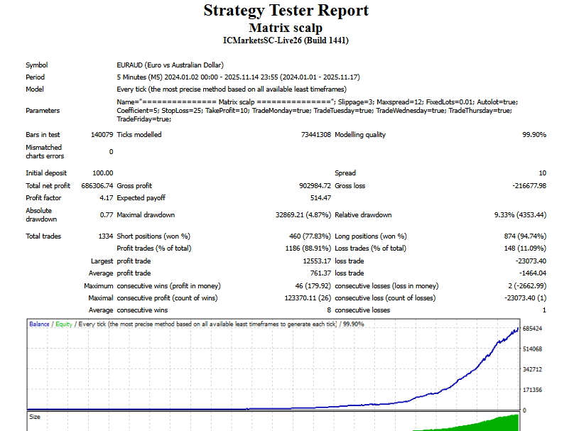 Check out the Matrix scalp backtest to see the amazing performance of one of the world’s top scalping robots